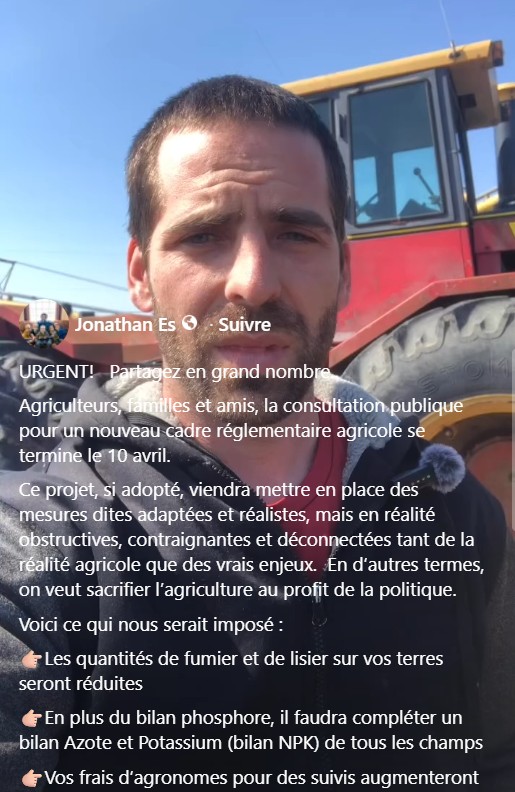 La "consultation" pour le "Projet de nouveau cadre réglementaire agricole" se termine le -- vendredi, 10 avril 2026-- et elle n'a débuté que le 25 février 2026... c'est bien trop court pour un thème aussi fondamental, pour les Québécois.