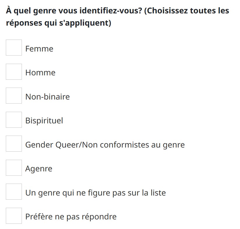 Imaginez, un seul instant, qu'il y ait présentement des Canadiens qui lisent toutes les options avant de répondre pour être certain de ne pas s'auto-mégenrer.